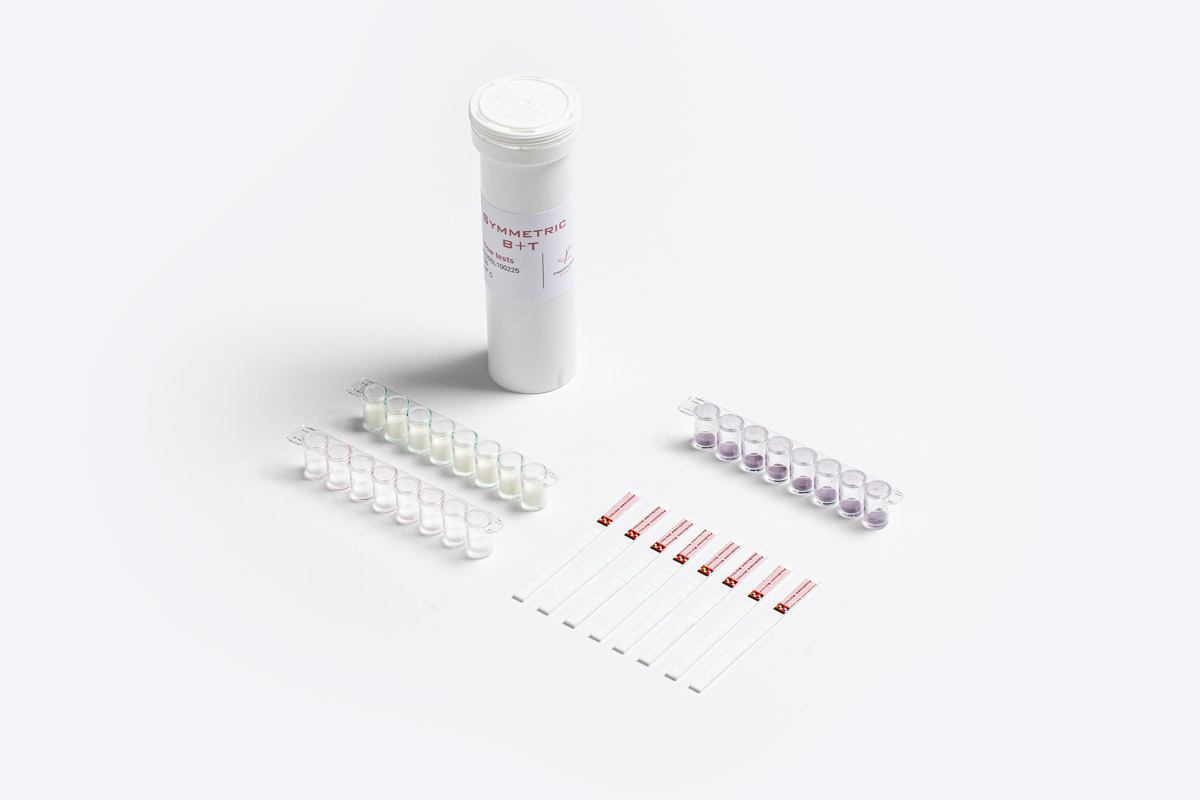 Symmetric B+T — это экспресс-тест для обнаружения β-лактамов и тетрациклинов в сыром коровьем, овечьем и козьем молоке, пастеризованном молоке и сухом молоке. Он разработан и произведён для контроля предельно допустимых уровней (ПДУ, MRL) ЕС.