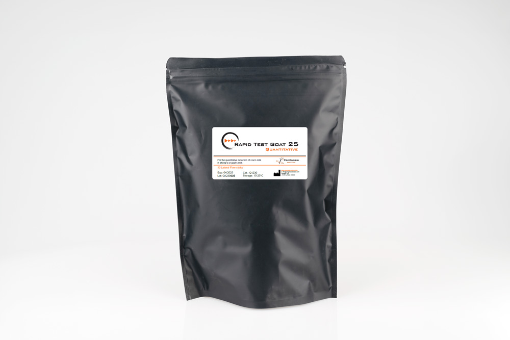 Rapid Test Goat 25 je napredni test bočnog protoka za kvalitativno i kvantitativno određivanje kozjeg mleka u ovčijem mleku, u praktičnom kasetnom formatu. Omogućava kvantifikaciju falsifikovanja do 25% i pruža jasne vizuelne rezultate čak i kada falsifikovanje prelazi 50%.