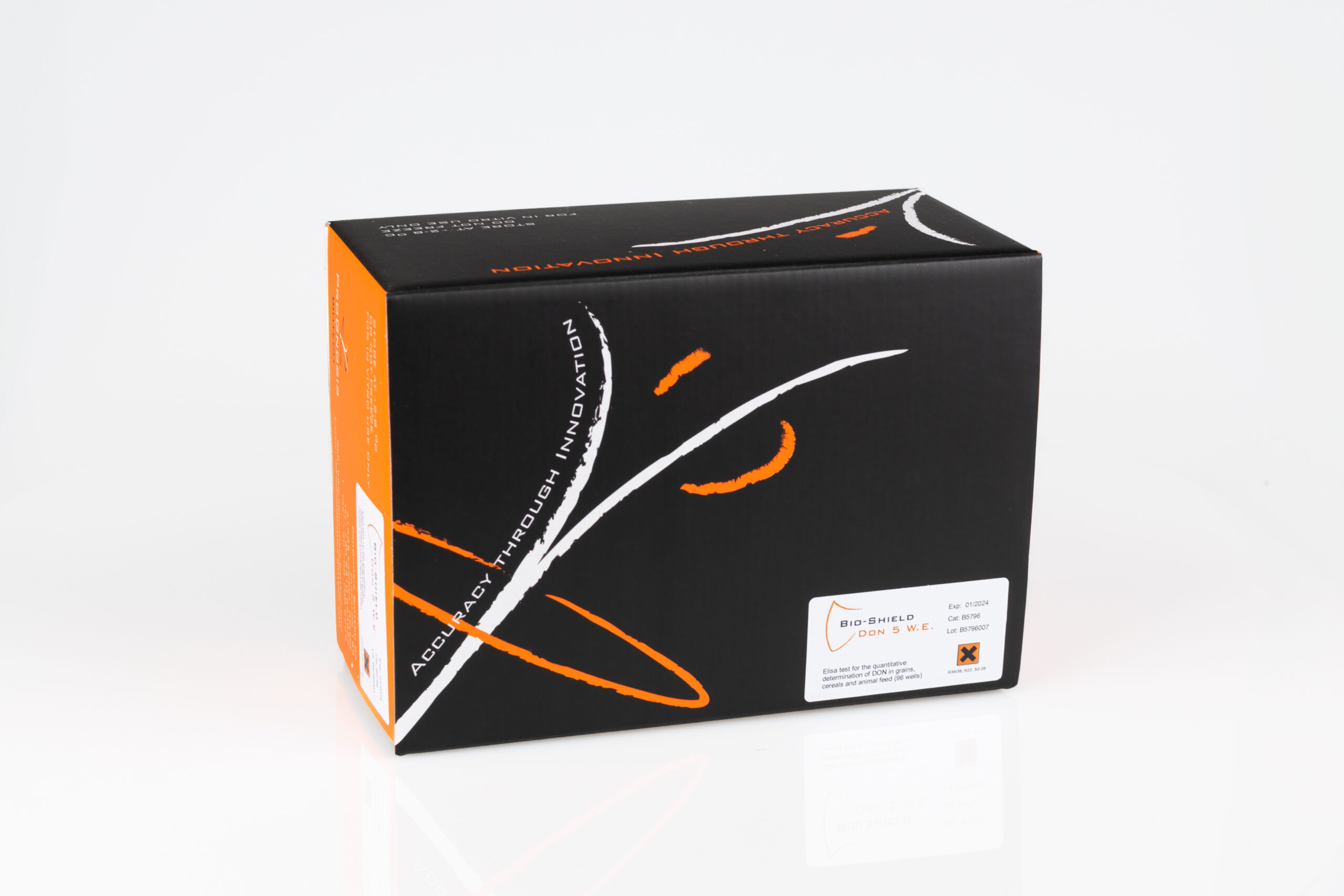 Bio-Shield DON 5 W.E. è un test ELISA competitivo quantitativo per la rilevazione del deossinivalenolo (DON) in cereali, granaglie e mangimi per animali, che utilizza un metodo di estrazione ecologico a base d’acqua.