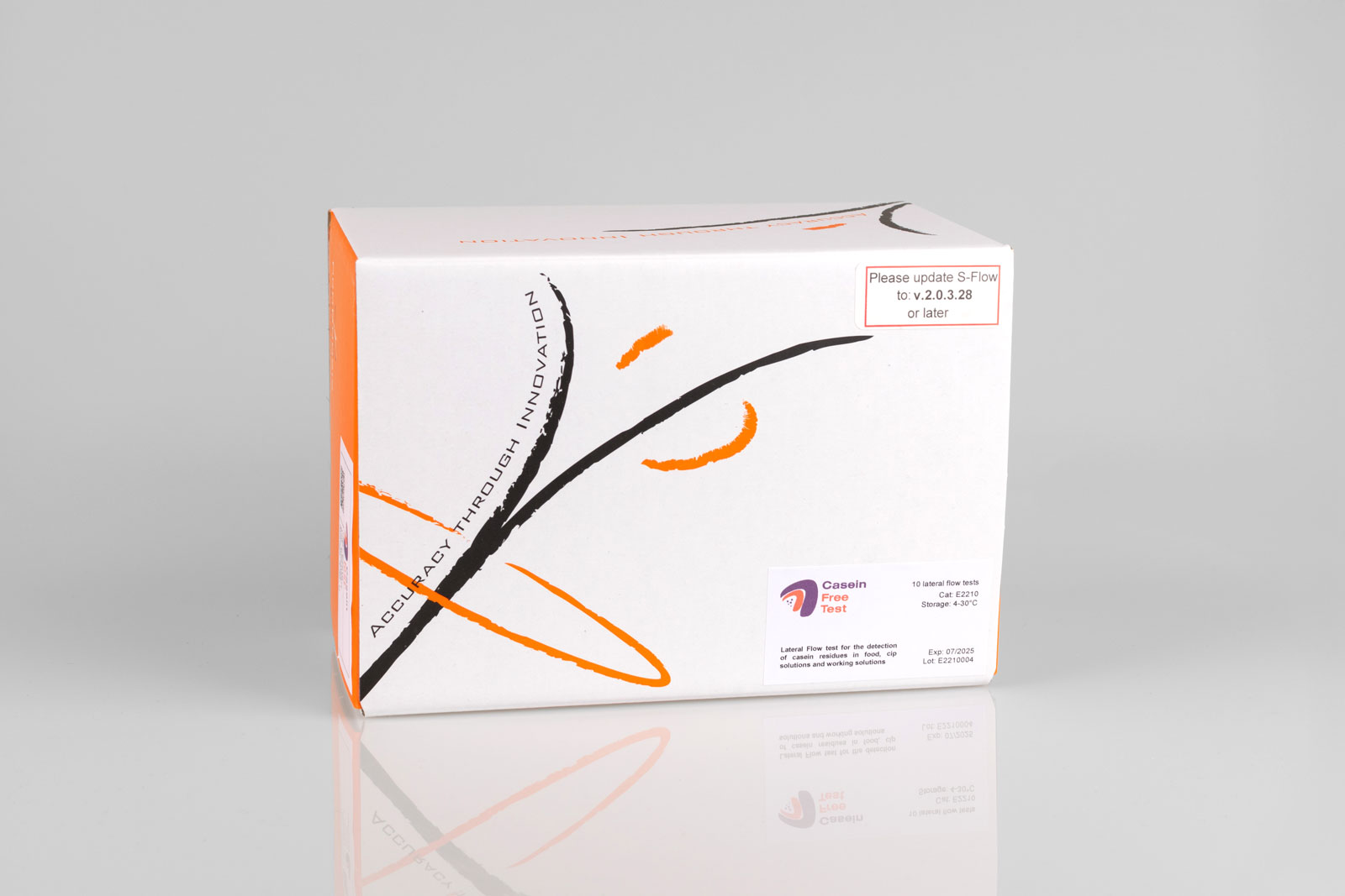 El Casein Free Test es una prueba de flujo lateral cuantitativa tipo sándwich para la determinación de residuos de caseína en productos alimentarios, especialmente en aquellos etiquetados como libres de caseína, así como en soluciones CIP y superficies de trabajo.