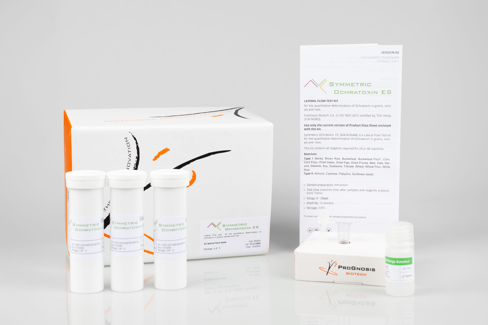 Symmetric OCHRATOXIN ES es una innovadora prueba de flujo lateral que utiliza tecnología de última generación para la detección cuantitativa de ocratoxina A en granos, cereales y frutos secos. Esta prueba rápida en formato de tira utiliza un disolvente orgánico para la fase de extracción, lo que la hace ideal para matrices complejas.