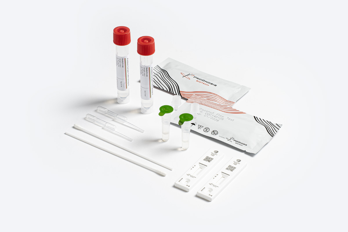 Coconut Free Test to ilościowy szybki test przepływu bocznego typu kanapkowego przeznaczony do oznaczania pozostałości białek kokosa w produktach spożywczych, szczególnie tych oznaczonych jako wolne od kokosa, w roztworach CIP oraz na powierzchniach roboczych.