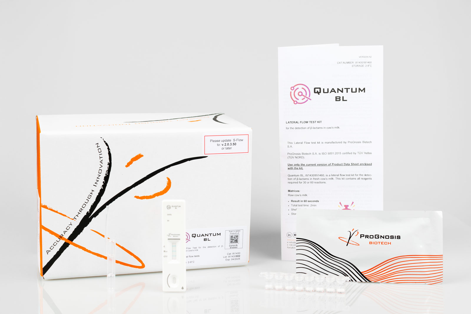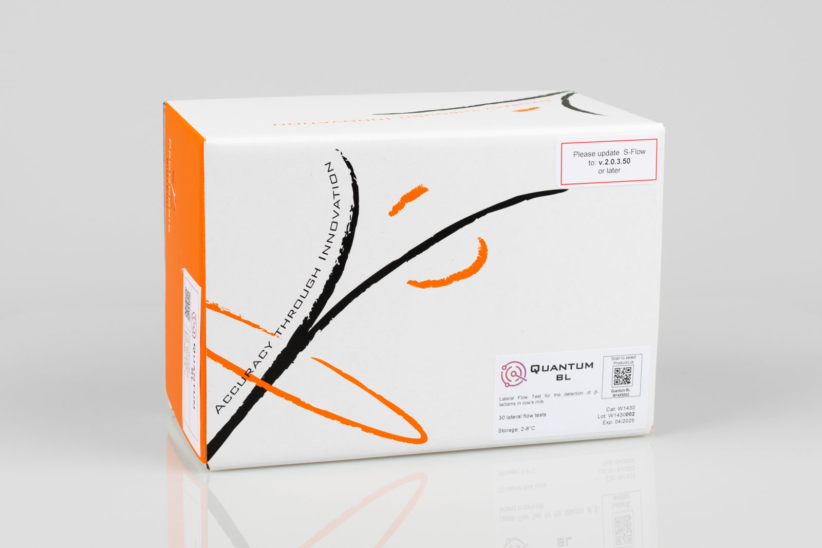 Quantum BL to ilościowy szybki test przepływu bocznego do wykrywania antybiotyków β-laktamowych w surowym mleku krowim i kozim. Został opracowany i wyprodukowany z myślą o bezpiecznym testowaniu zgodnie z unijnymi poziomami MRL. Może być stosowany zarówno w terenie, jak i w laboratorium.