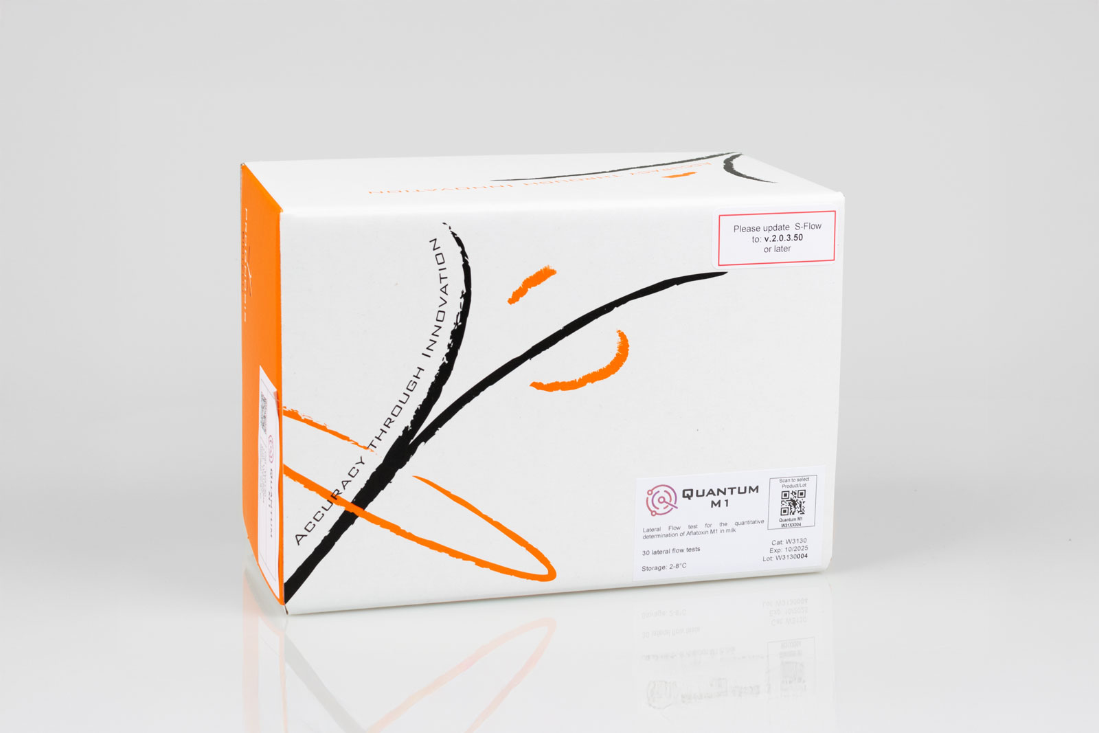 Quantum M1 ist ein quantitativer Lateral-Flow-Test zur Bestimmung von Aflatoxin M1 in roher Kuhmilch. Er wurde entwickelt und hergestellt, um die EU-Grenzwerte (0,05 μg/kg) sicher zu überprüfen, und kann sowohl auf dem Feld als auch im Labor verwendet werden.