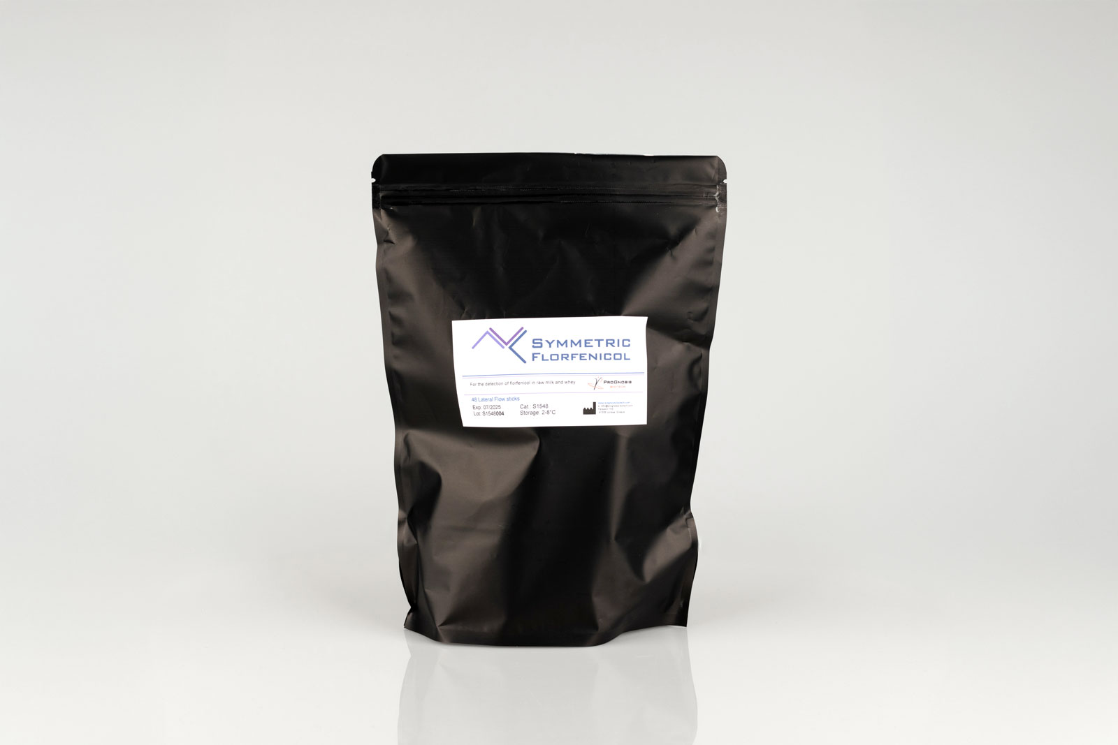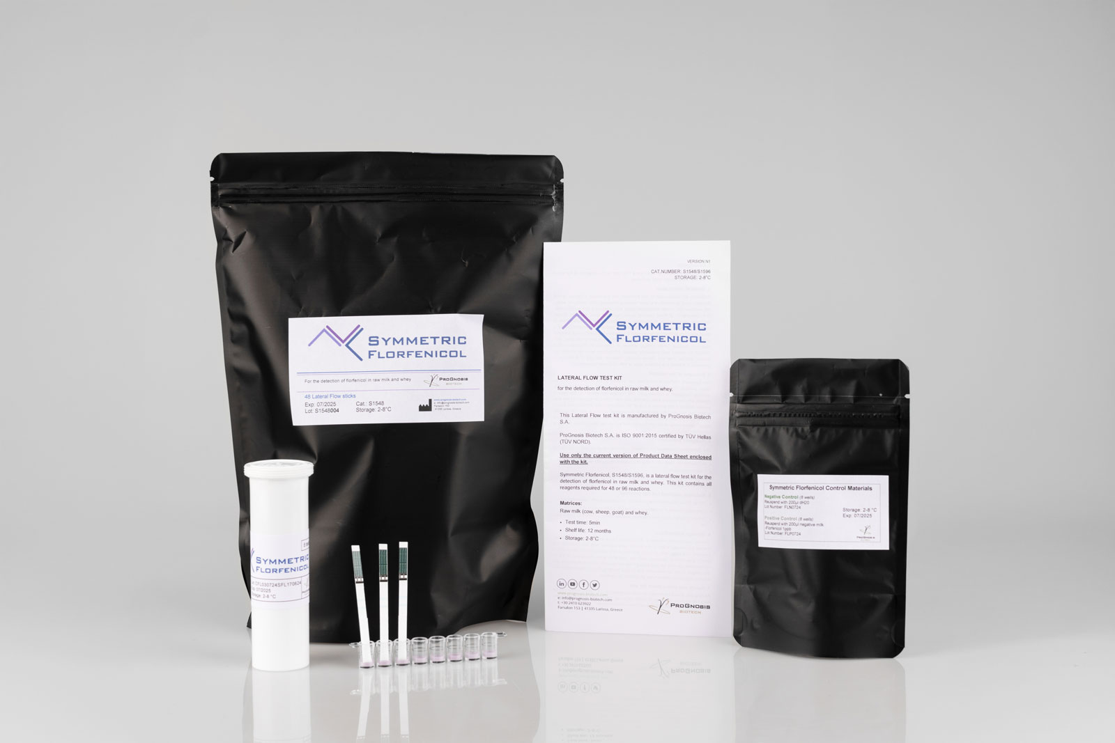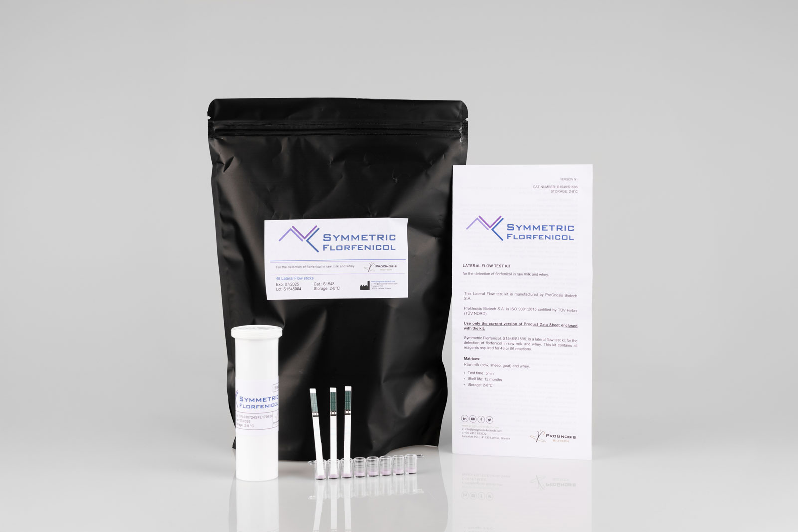 Der Symmetric Florfenicol ist ein Lateral-Flow-Test für den Nachweis von Florfenicol in Rohmilch (Kuh, Schaf, Ziege) und Molke. Die Verwendung von Florfenicol ist bei Tieren, die Eier oder Milch für den menschlichen Verzehr produzieren, verboten.