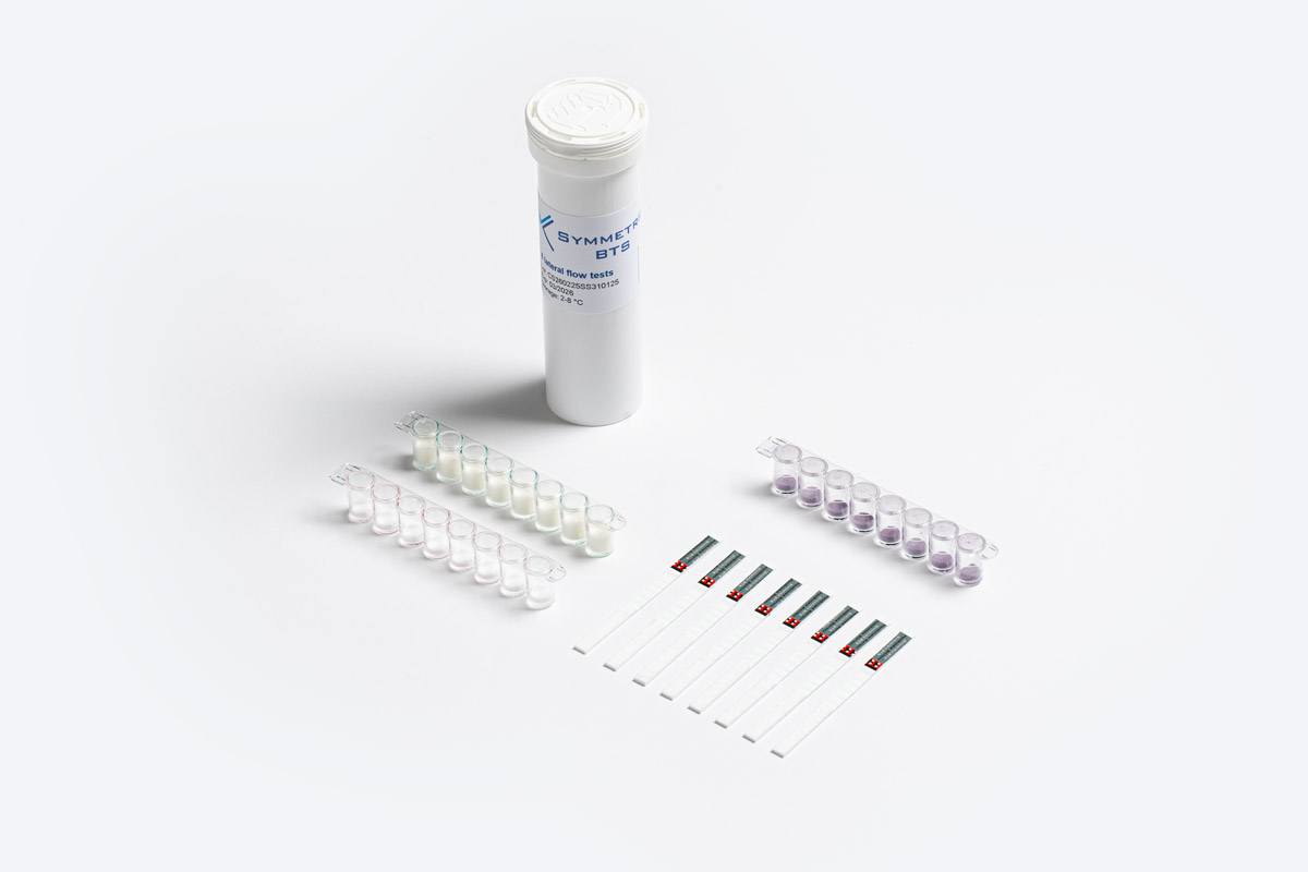 Symmetric BTS é um teste de fluxo lateral para a deteção de β-lactâmicos, tetraciclinas e sulfonamidas em leite cru de vaca, ovelha e cabra, leite pasteurizado, leite em pó e soro de leite. Foi desenvolvido e fabricado para testar com segurança os LMR da UE.
